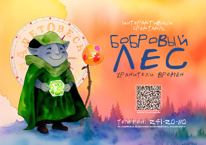 В интерактивном спектакле «Бобровый лес: Хранители времён» дети попробуют разобраться, почему летом пошёл снег, осенью стало жарко, а зимой все вдруг отправились купаться. И помогут хранителям вернуть лето, зиму, весну и осень на свои места. Задача непростая, но профессиональные актёры, красочные ростовые куклы, спецэффекты, красивые декорации, музыка и подвижные игры, создадут атмосферу веселья и волшебства и помогут навести порядок!