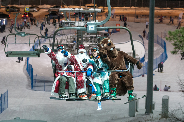 Для всех горнолыжников и сноубордистов в костюмах Дедов Морозов и Снегурок с 19:00 до 21:00 подъемник бесплатный!