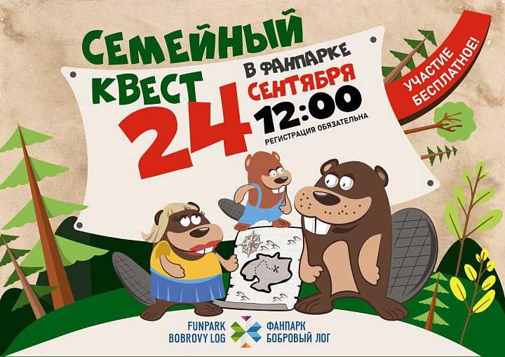24 сентября Фанпарк «Бобровый лог» приглашает самых дружных, активных и весёлых поучаствовать в Семейном квесте!