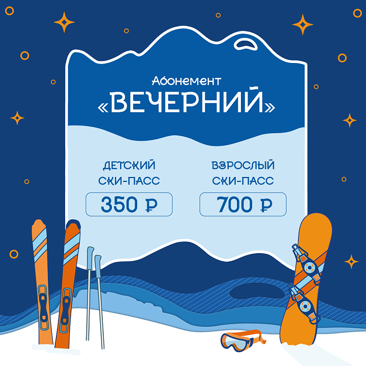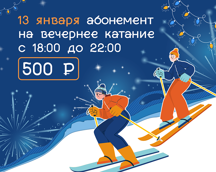Только в этот день абонемент на вечернее катание с 18:00 до 22:00 стоит всего 500 рублей.