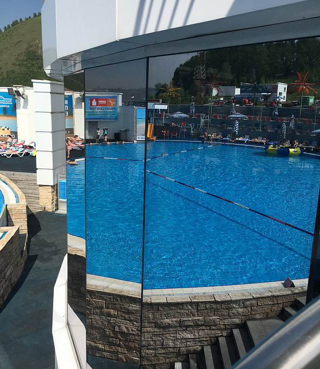 Пляжный комплекс «Мираж» предусмотрен для отдыха детей и взрослых, расположен в рекреационной зоне в непосредственной близости с нацпарком «Красноярские Столбы». Современная система водоподготовки позволяет поддерживать температуру воды на уровне +25-27°С круглосуточно. Бассейн оборудован водными аттракционами (горки для детей, водные батуты) и ярусами с шезлонгами. Диаметр бассейна 36 метров, глубина – 1,5 метра.