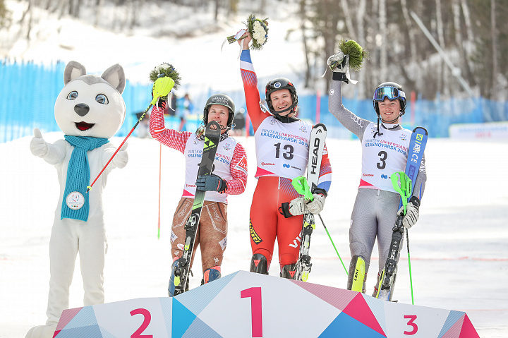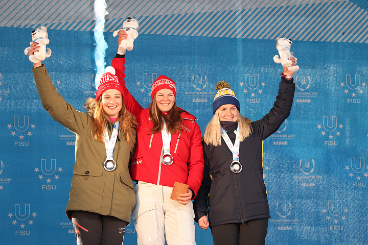 Этот день горнолыжная студенческая сборная Швейцарии может смело занести себе в актив. В женской гонке Амели Дюпаскье завоевала серебряную медаль, правда, уступив австрийке Джессике Гфререр довольно много по горнолыжным меркам – чуть более секунды. Бронзу из Красноярска домой увезет Фанни Аксельссон из Швеции.