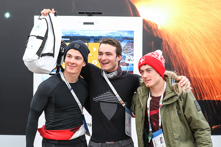 В Фанпарке «Бобровый лог», в Шатре Генерального партнера Зимней универсиады-2019 компании «Норникель», прошли шуточные соревнования симуляторе горных лыж с участием молодых звезд – швейцарцев Лукаша Ципперта, Янника Шабло, Бенуа Фюмо, а также россиянина Ивана Кузнецова.