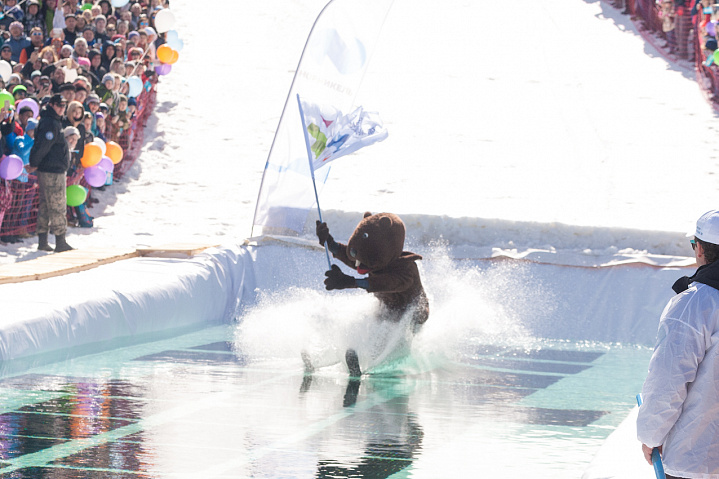 После бурных обсуждений победу в номинации «Сухим из воды» и главный приз, сезонный ски-пасс, судьи отдали Михаилу Полякову, который играючи на балалайке промчался на горных лыжах по водной глади лужи в ярком образе Балалаечника Ивана.